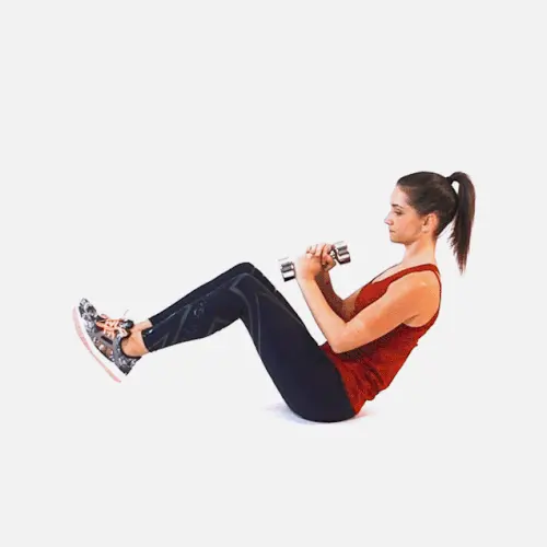 در حالت درازکش، دمبل سبک روی سینه، نیمتنه رو بالا بیار و عضلات شکم رو منقبض کن.